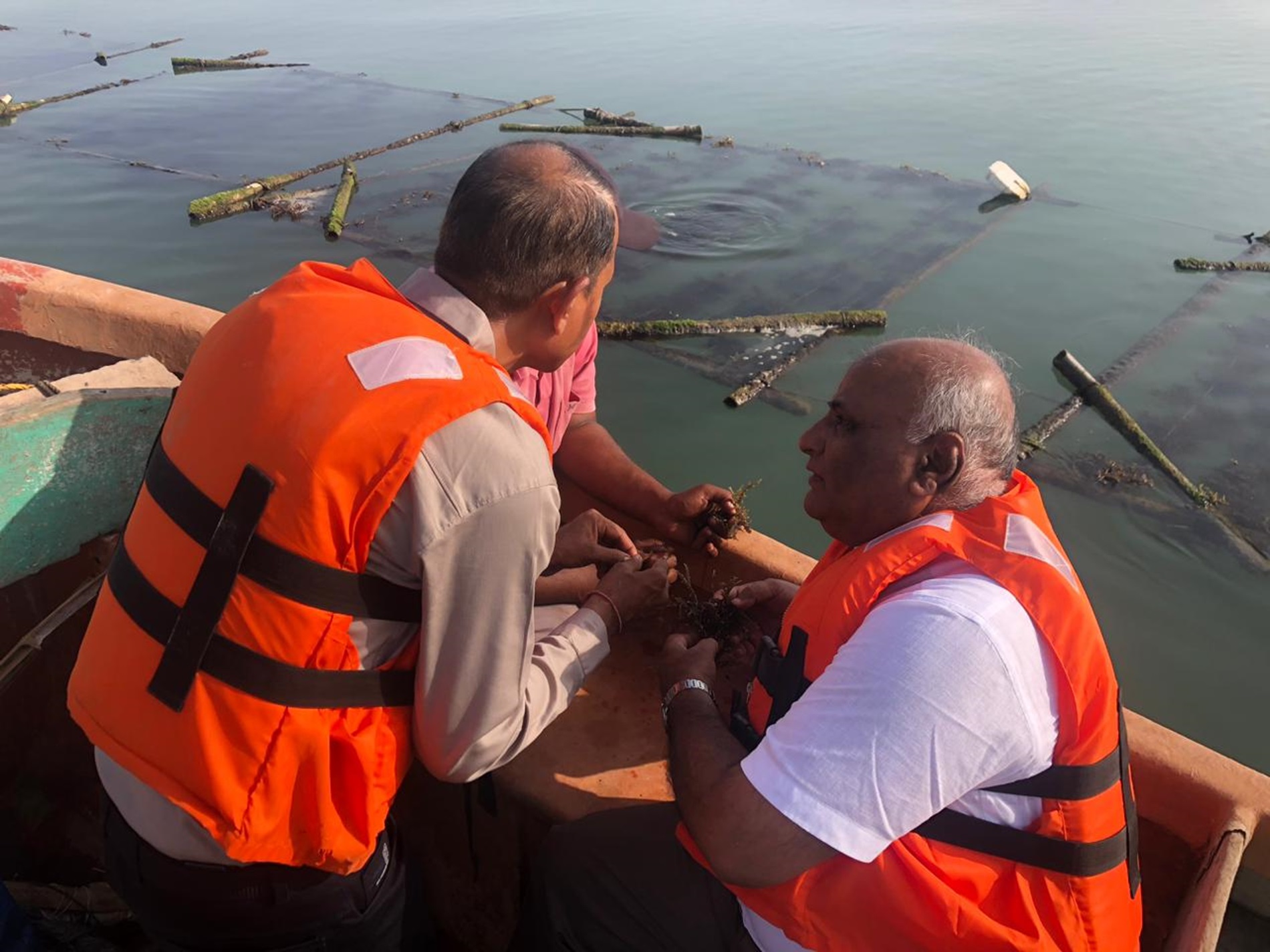 Photo Album Caption : Visit of Dr. P. H. Tank, Hon. Vice Chancellor, Kamdhenu University, Gandhinagar at Fisheries Research Station, Kamdhenu University, Sikka.